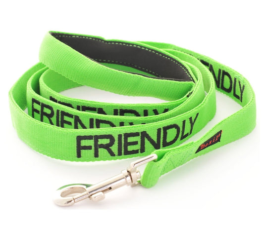 Green Nylon Pet Dog Lead Leash by Friendly Dog Collars + Safety S M L XL Collars